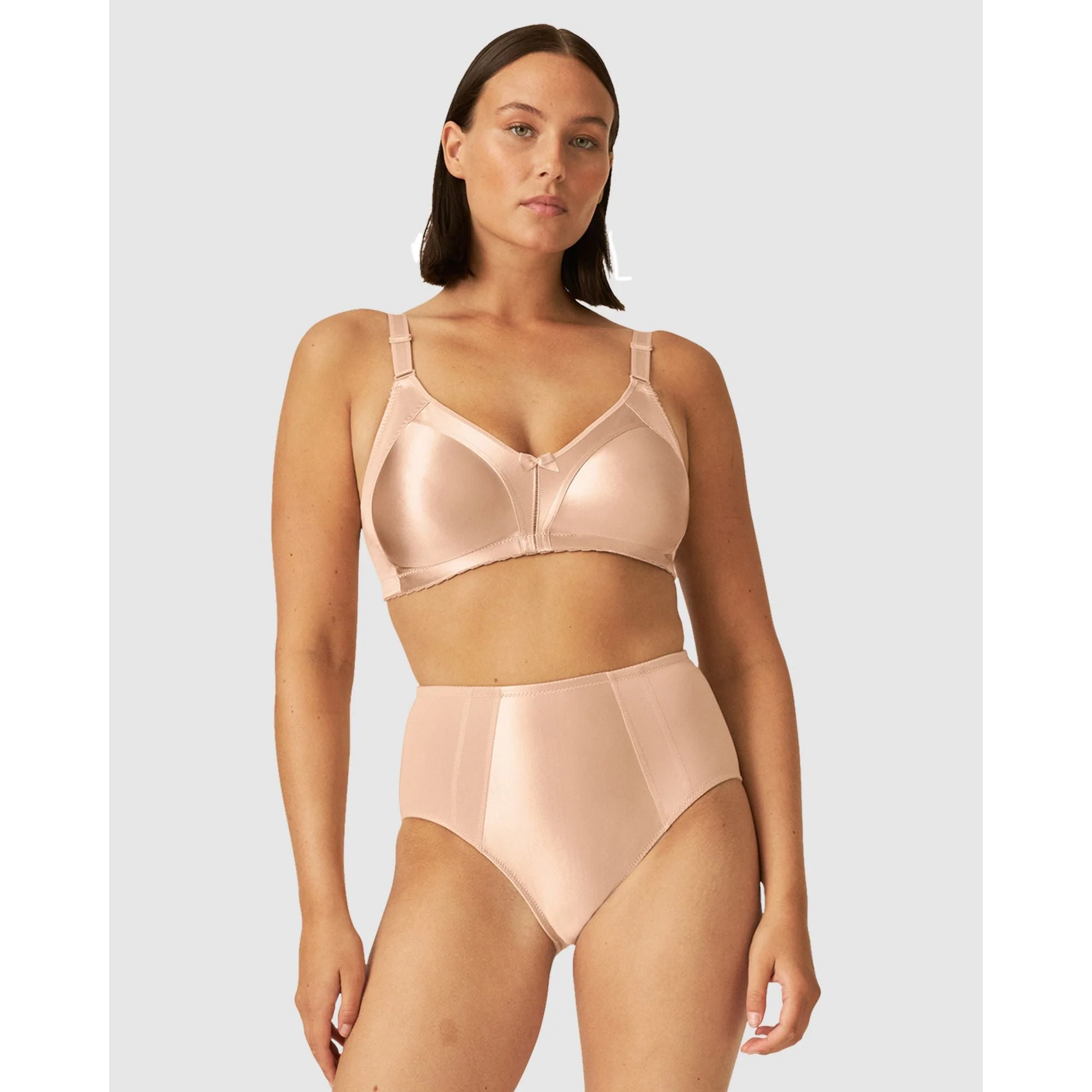 Trim your bust line by one cup size to make those button-up shirts fit better with the Moulded Soft Cup Minimiser Bra by Naturana, a retro-esque design that's made in glossy satin. The smooth, seamfree cups have supportive sides, and provide a comfortably-secure fit without the need for underwires.