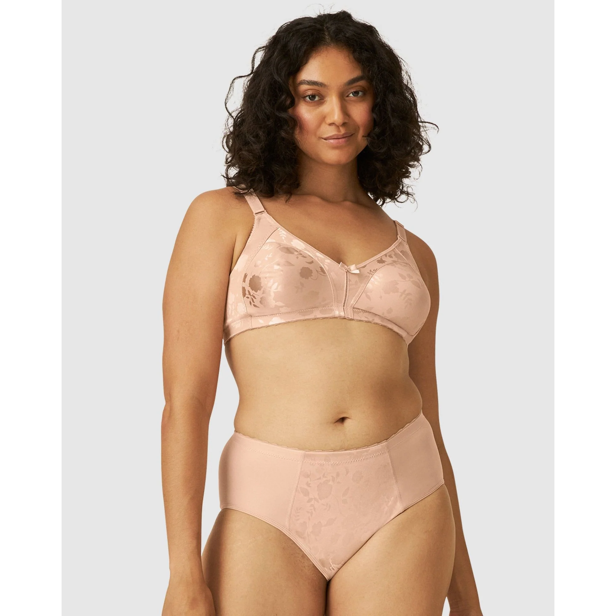 This wireless minimiser bra provides a stylish way to achieve a slimmer, sleeker silhouette at the bust line. The cups are seamless and made from a glossy, floral-print fabric. This minimiser bra is designed to reduce your bust by up to one cup size, and also features side support panels for a narrower front profile. It has wide straps for added comfort, which fasten at the front for your convenience.