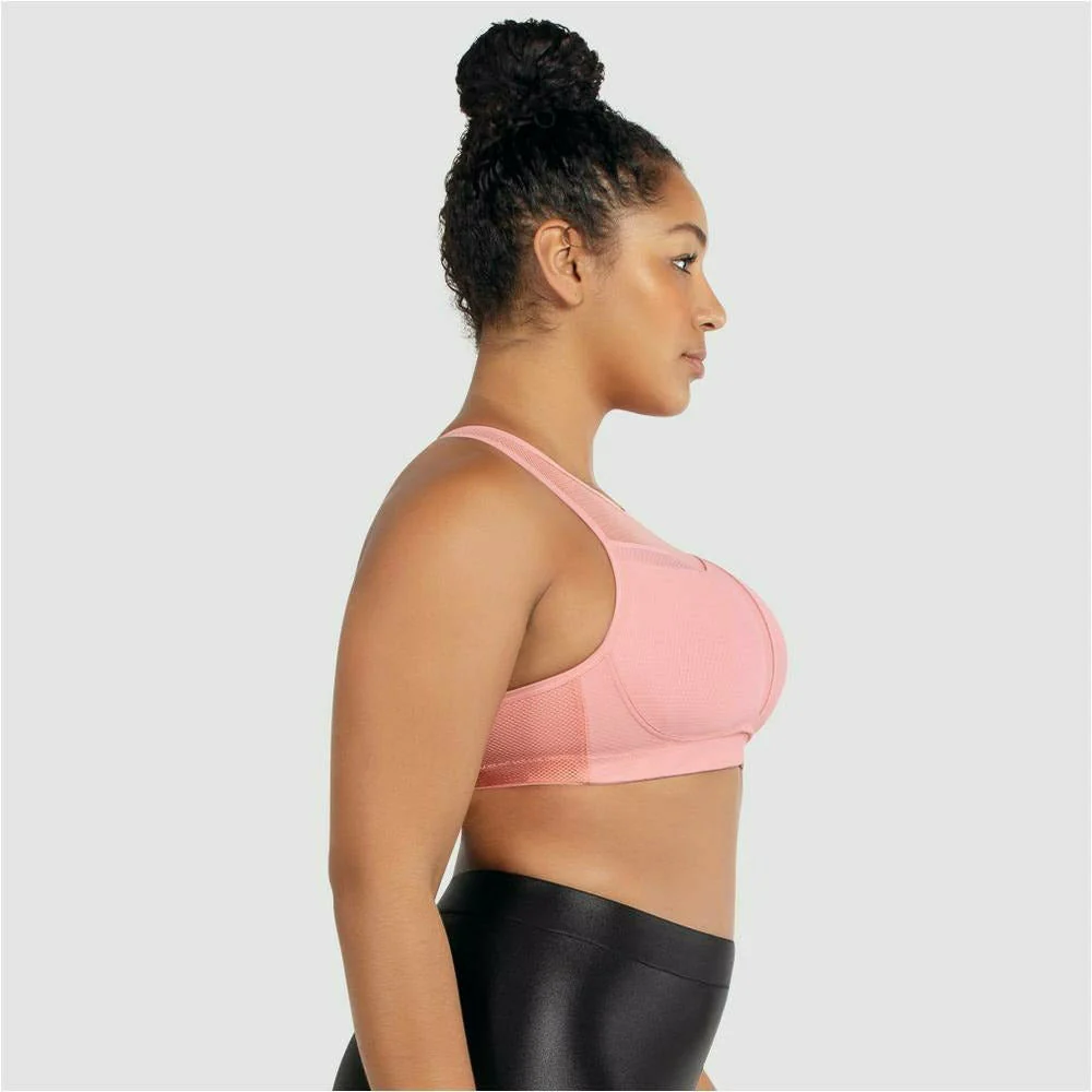 The lined wire-free cups, supportive band, and eye-catching mesh details of this wireless sports bra prove that support can be sexy. Converts easily to a criss-cross style for added versatility.