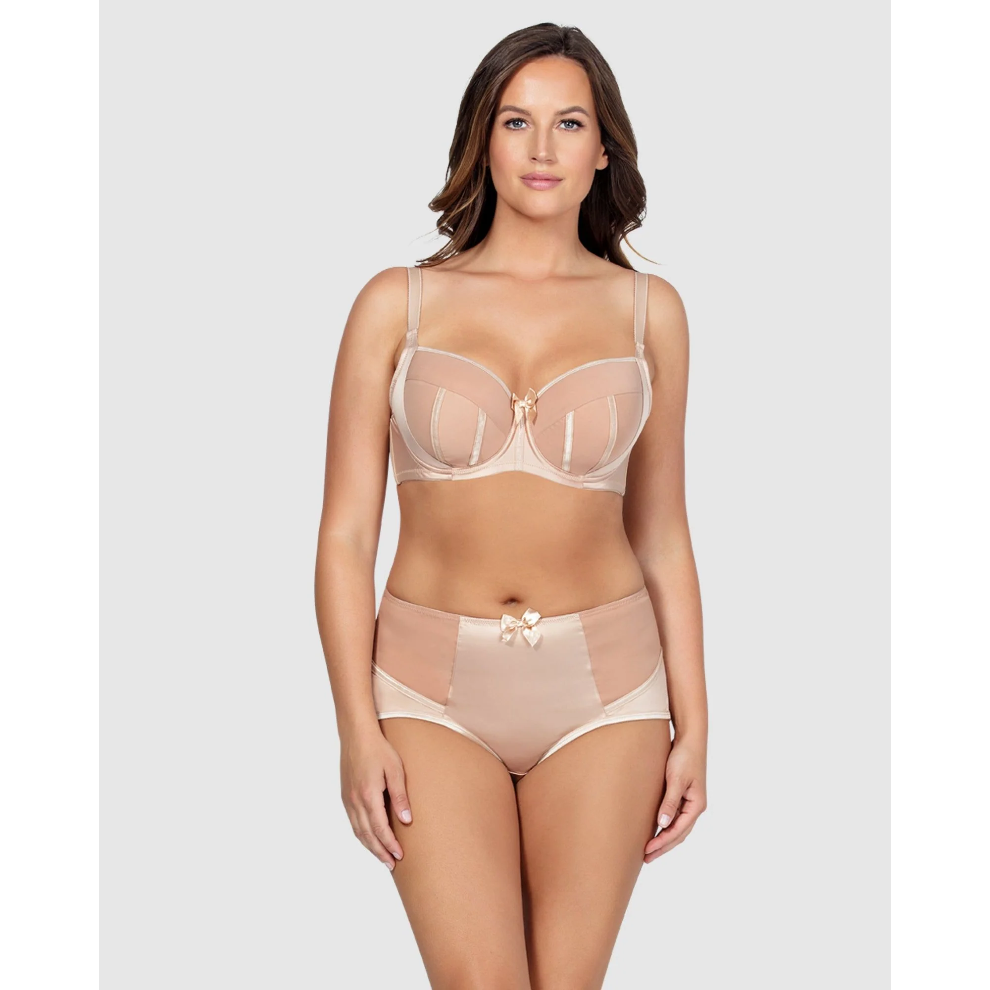 - Perfectly placed satin bow at center front.