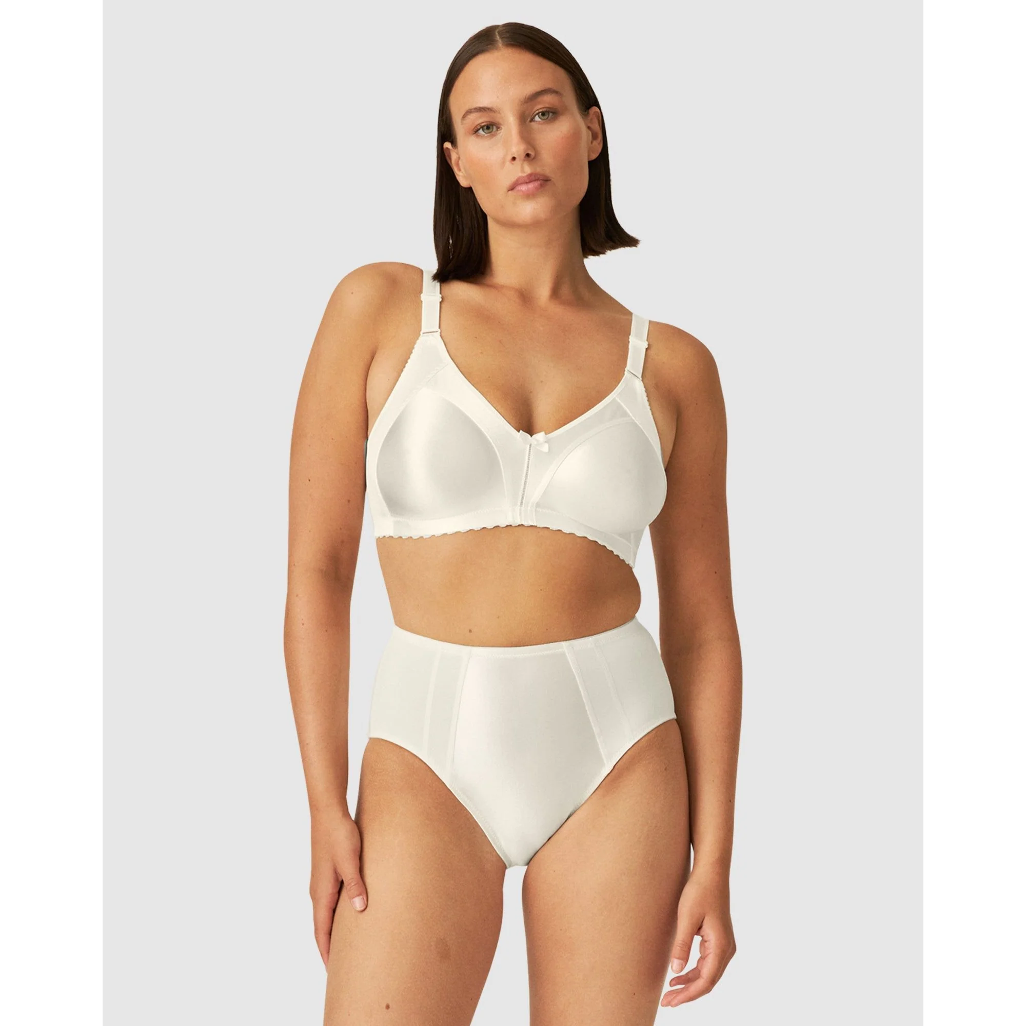 Trim your bust line by one cup size to make those button-up shirts fit better with the Moulded Soft Cup Minimiser Bra by Naturana, a retro-esque design that's made in glossy satin. The smooth, seamfree cups have supportive sides, and provide a comfortably-secure fit without the need for underwires.