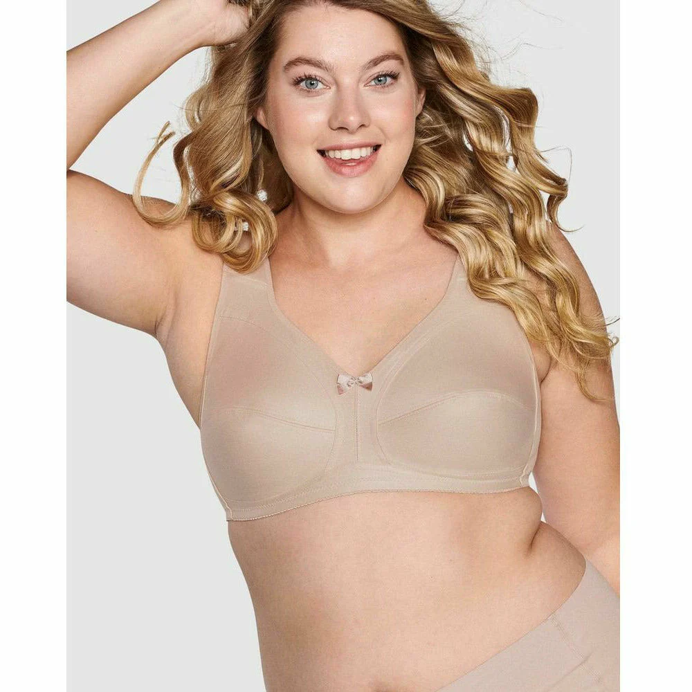 This functional plus size bra has been designed first and foremost with your comfort in mind. It features wide, cushioned straps (extra-wide on larger sizes) that relieve pressure on your shoulders. It's a full coverage bra with soft, wireless cups that still provide sturdy support and gentle shaping, enhanced by a supportive ballet-shaped back. The cotton-blend fabric is soft and breathable, with a subtle satin finish for a stylish touch.
