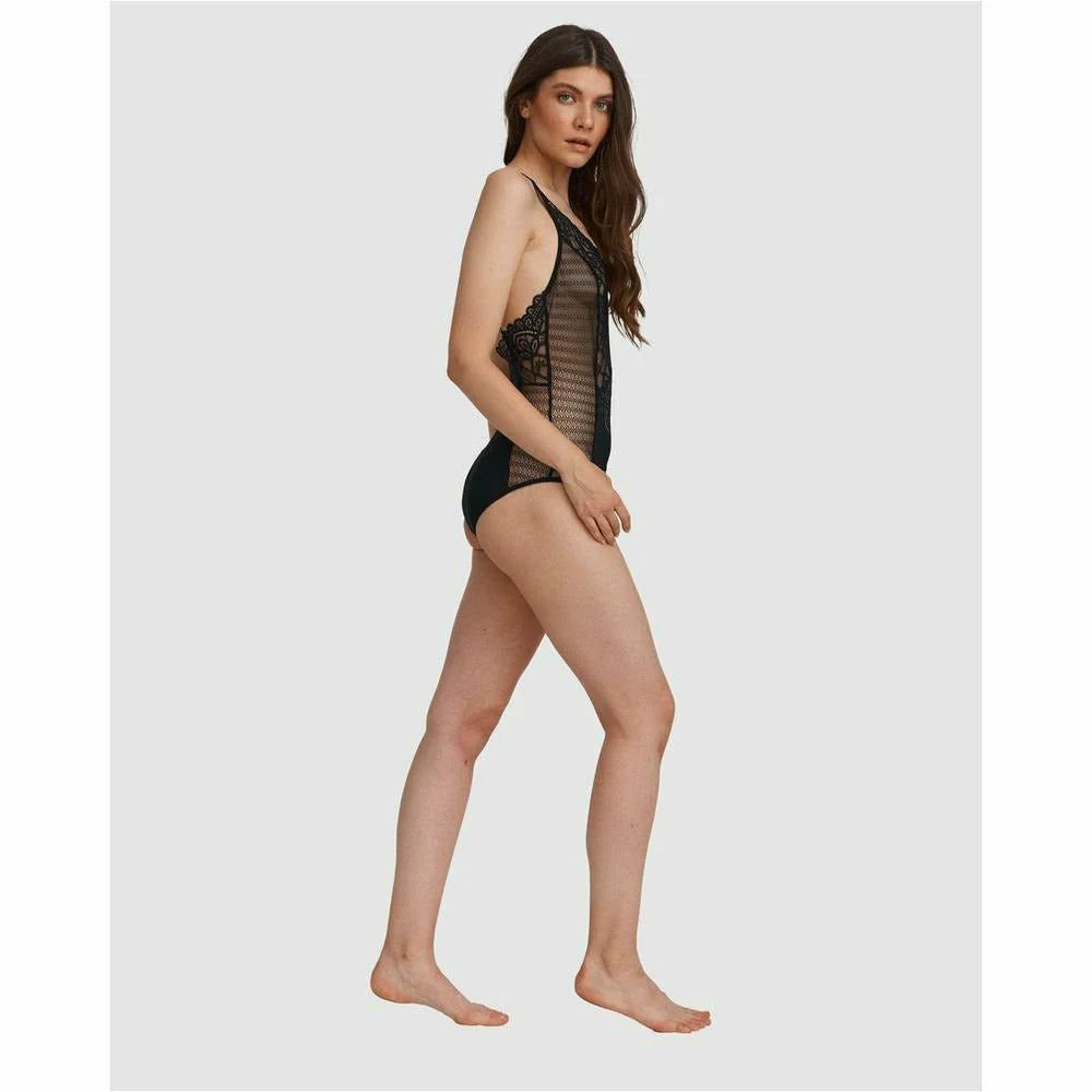 Treat yourself to a little opulence with this Lace Bodysuit, by premium-quality Polish label Oh!Zuza. Panels of opaque fabric and sheer lace combine to create a modern, geometric look, and are placed to subtly enhance your curves.