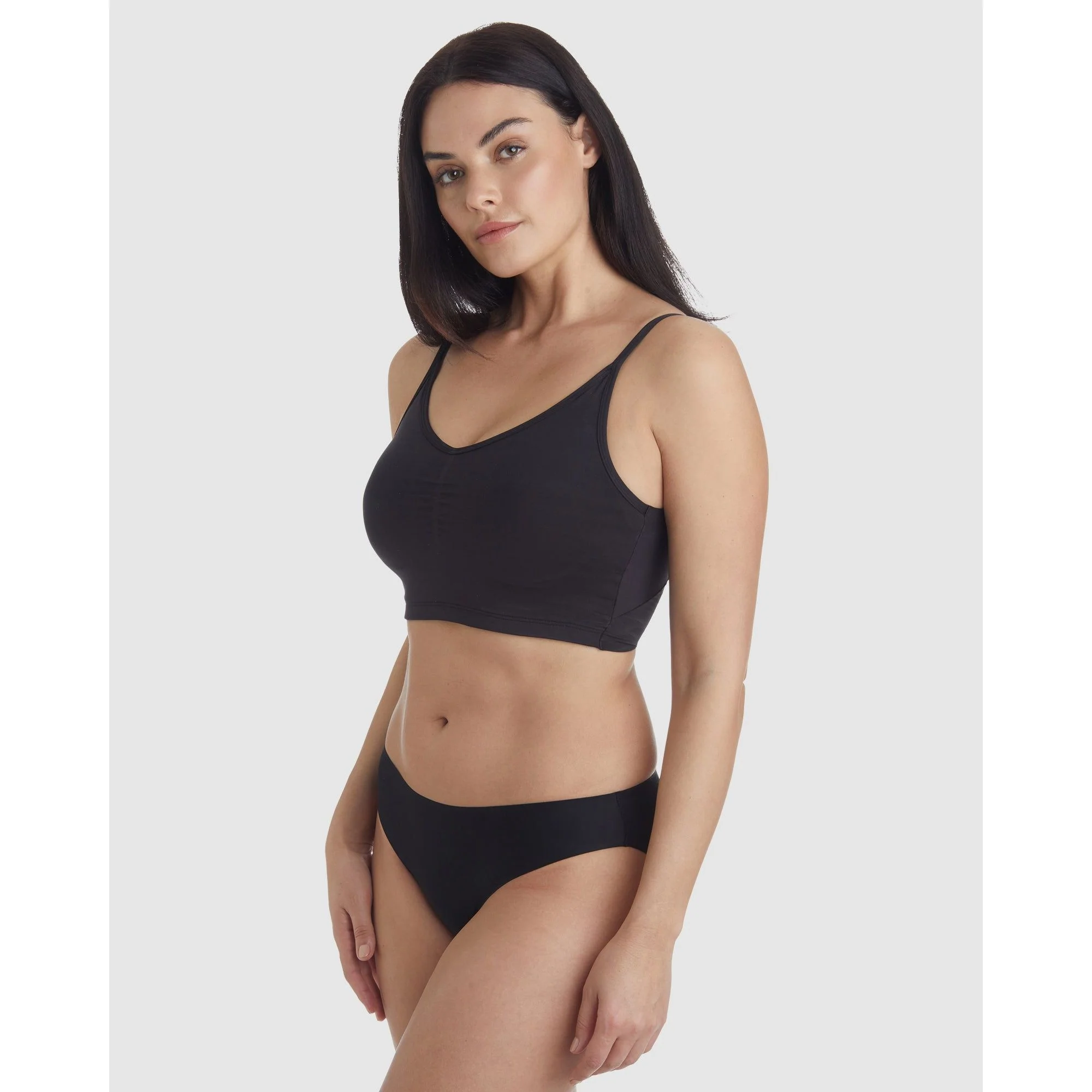 Half way between a bralette and a shapewear camisole, this innovative shapewear crop top delivers firm side and back smoothing to erase underarm bulges and 'back fat'. Designed to be worn alone, without a bra, it also features foam-padded cups so that your bust stays looking full and curvy instead of flattened.