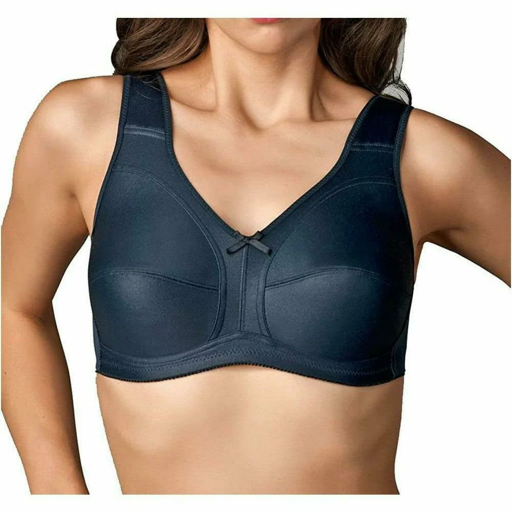 This functional plus size bra has been designed first and foremost with your comfort in mind. It features wide, cushioned straps (extra-wide on larger sizes) that relieve pressure on your shoulders. It's a full coverage bra with soft, wireless cups that still provide sturdy support and gentle shaping, enhanced by a supportive ballet-shaped back. The cotton-blend fabric is soft and breathable, with a subtle satin finish for a stylish touch.
