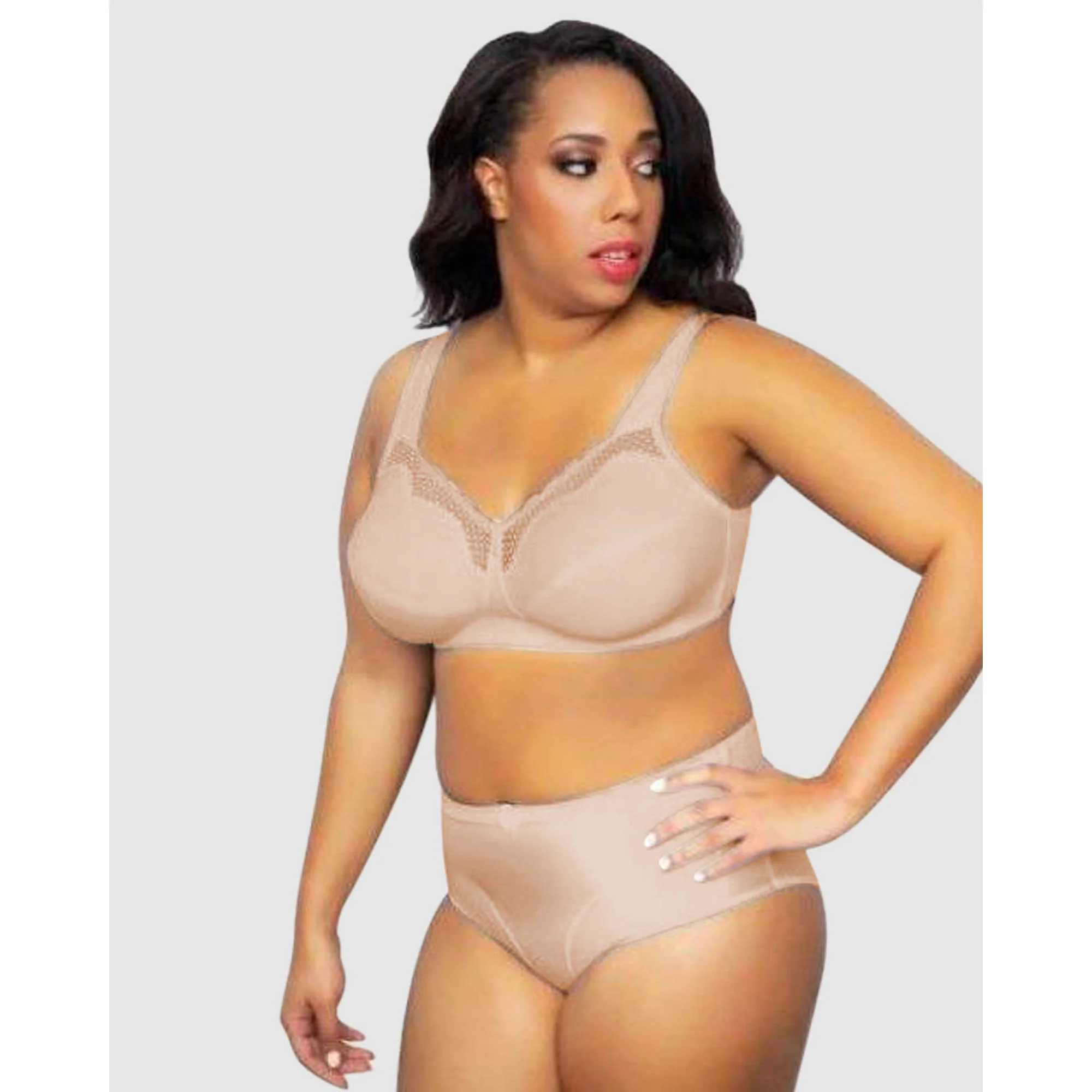 This wireless cotton bra offers the perfect blend of support and comfort. It's a full-cup bra with soft, seamed cups that gently shape your bust, but an insert of sheer lace along the neckline stops the look from being too 'full coverage'. And if you often struggle with digging straps, you'll love this bra with wide straps that better distribute the weight on your shoulders.