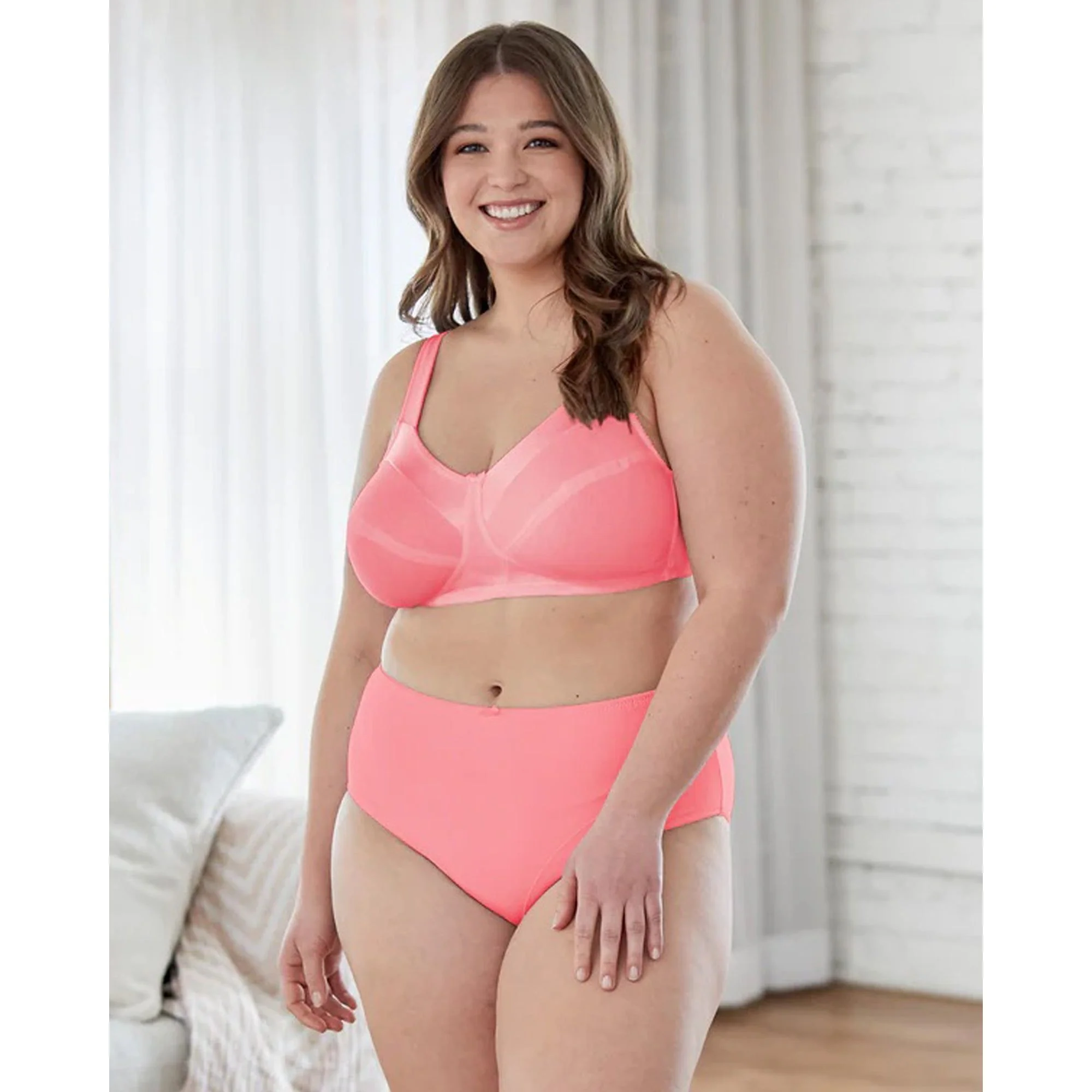 Delightfully comfortable and almost invisible under your clothing, this wirefree cotton bra is perfectly suited to everyday wear. The full cup bra shape with seams delivers a great fit and gentle shaping, while the satin-edged neckline adds a stylish finish.