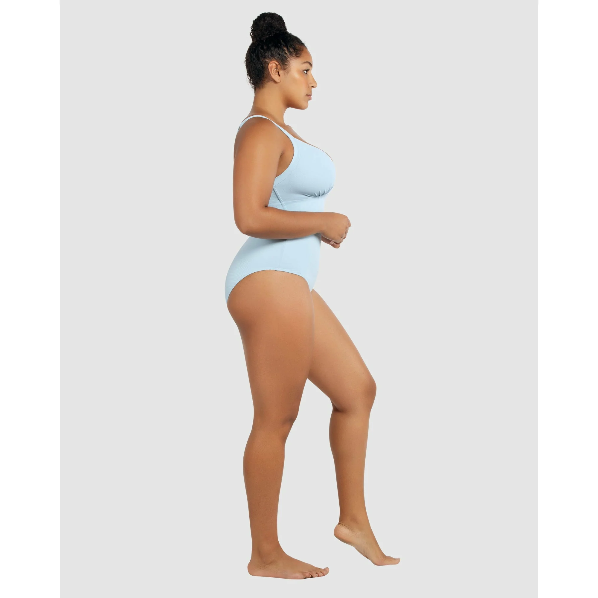 Created by full-bust specialists Parfait, this one piece swimsuit features a cleavage-flaunting plunge V neck, but also a hidden shelf bra with a wide underbust band to deliver lightweight support and keep the neckline in place. It's a high back swimsuit with chic Y-shaped shoulder straps, culminating in a minimalist bow adornment.